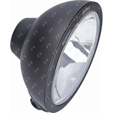 Silny reflektor dodatkowy w solidnej obudowie z ciśnieniowego odlewu cynku, obudowa i uchwyt pomalowane trwałym, matowym lakierem w kolorze czarnym, w komplecie osłona i uchwyt
