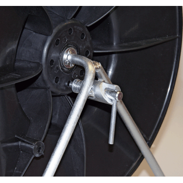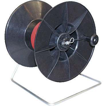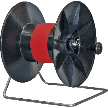 Stabilny, wymienny bęben z tworzywa sztucznego, wyjątkowo szeroka wersja, hamulec zapobiega rozwijaniu bębna, idealny pomocnik przy budowie ogrodzenia, w komplecie pas do przenoszenia i stojak