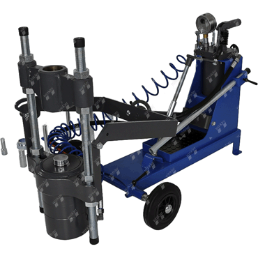 Szybkie i łatwe pozycjonowanie na pojeździe dzięki trójosiowej szybkiej regulacji. Siła nacisku: 65 t Szerokość w świetle między śrubami napinającymi: 290 mm Wysokość w świetle (maks.): 480 mm Skok: 120 mm Ciśnienie nominalne: 420 bar Maksymalne przyłącze powietrza: 13 bar Masa: ok. 130 kg Napełnienie olejem: ok. 3,5 litra