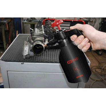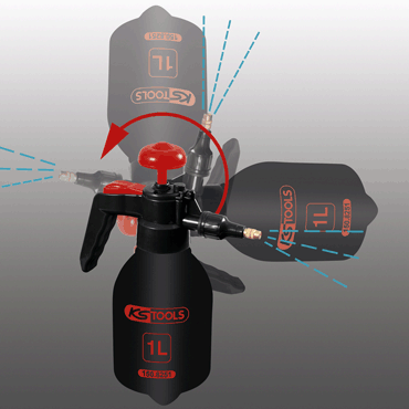 Wykonany z wysokiej jakości polietylenu, do różnych chemikaliów takich jak m.in. Detergenty i środki czyszczące itp., regulowana i zamykana mosiężna głowica natryskowa, wyposażona w uszczelki FPM (Viton®), nadaje się do prac nad głową, nie nadaje się do czyszczenia hamulców, odporny na olej i paliwo