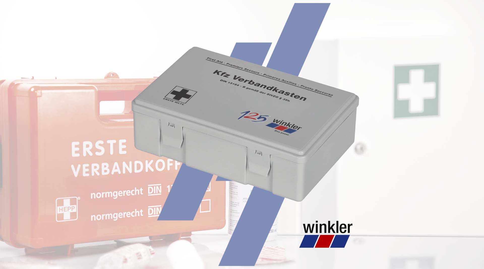 Wytrzymała apteczka z odpornego na uderzenia tworzywa ABS, odporna na wysoką temperaturę i zachowująca swój kształt – odpowiednia do samochodów osobowych, ciężarowych i dostawczych zgodnie z normą DIN 13 164. W autobusach do 22 miejsc siedzących wymagana jest jedna apteczka, a od 23 miejsc siedzących dwie apteczki zgodnie z normą DIN 13 164-B.